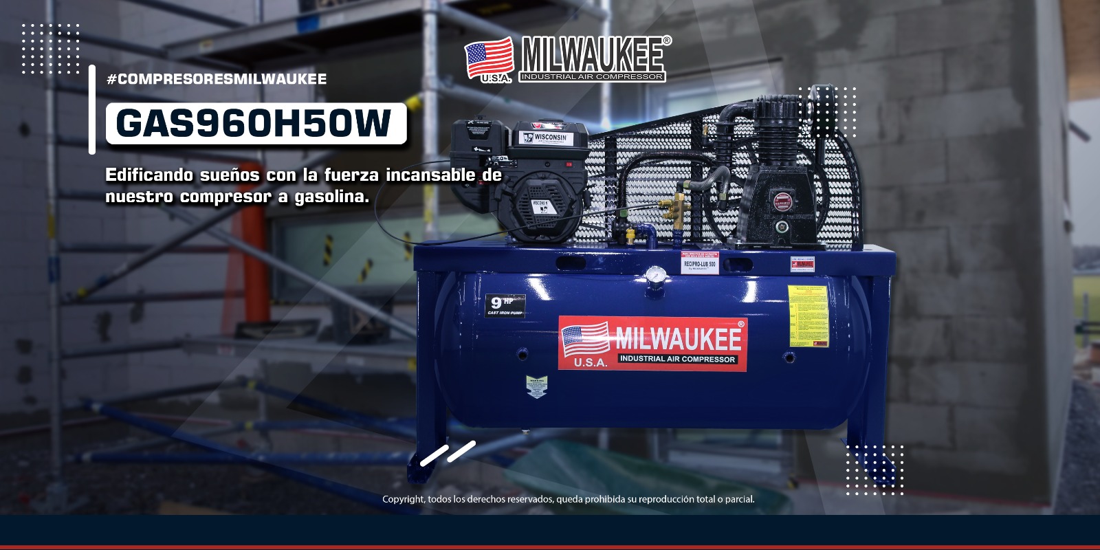 Con 120 PSI es ideal para alimentar una amplia gama de herramientas neumáticas, incluyendo llaves de impacto, martillos neumáticos y pistolas de pintura.