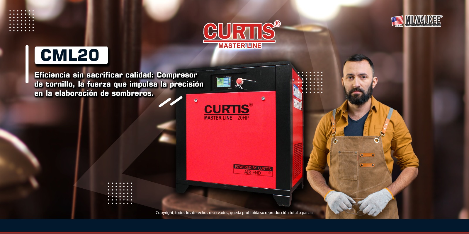 Compresor de tornillo gabinete: ste compresor de 20 HP está diseñado para soportar jornadas de trabajo intensas, asegurando un desempeño excepcional y una durabilidad prolongada en entornos exigentes. Su gabinete acústico optimiza el espacio en planta al ofrecer una operación sumamente silenciosa, protegiendo al mismo tiempo el sistema contra el polvo y agentes externos, lo que garantiza un suministro de aire confiable a 145 PSI para sus procesos más críticos.