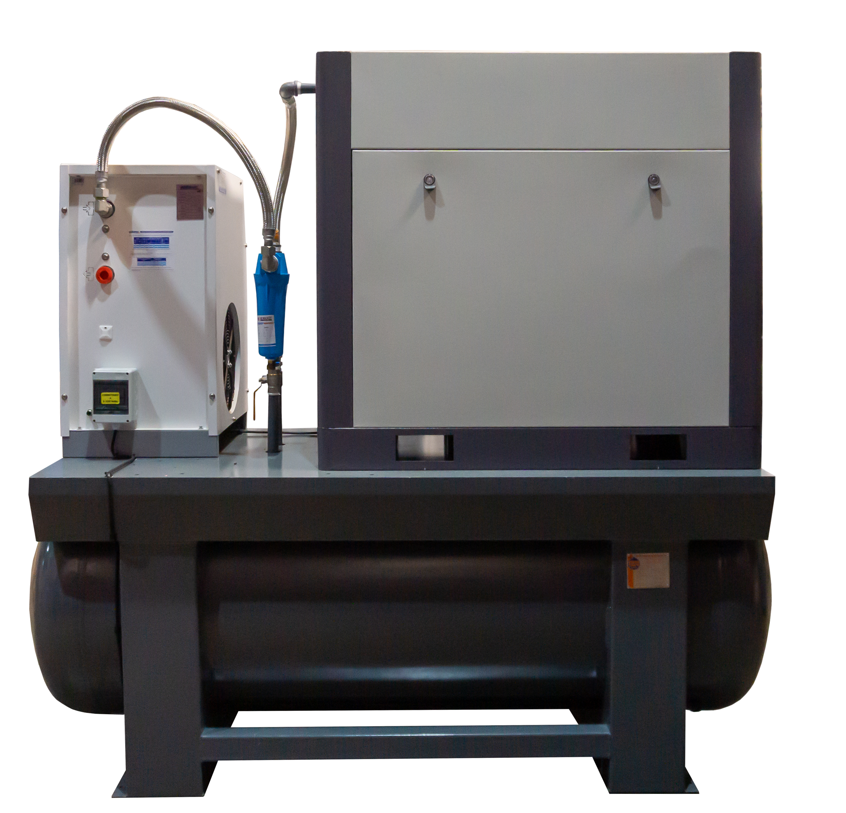 Operación Estabilizada a 145 PSI: El gran volumen del tanque permite mantener de forma constante los 10 bar de presión, asegurando que procesos críticos como sandblast pesado o líneas de empaque masivo funcionen con torque y fuerza uniformes.